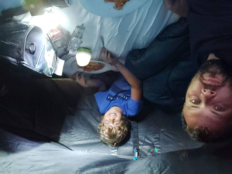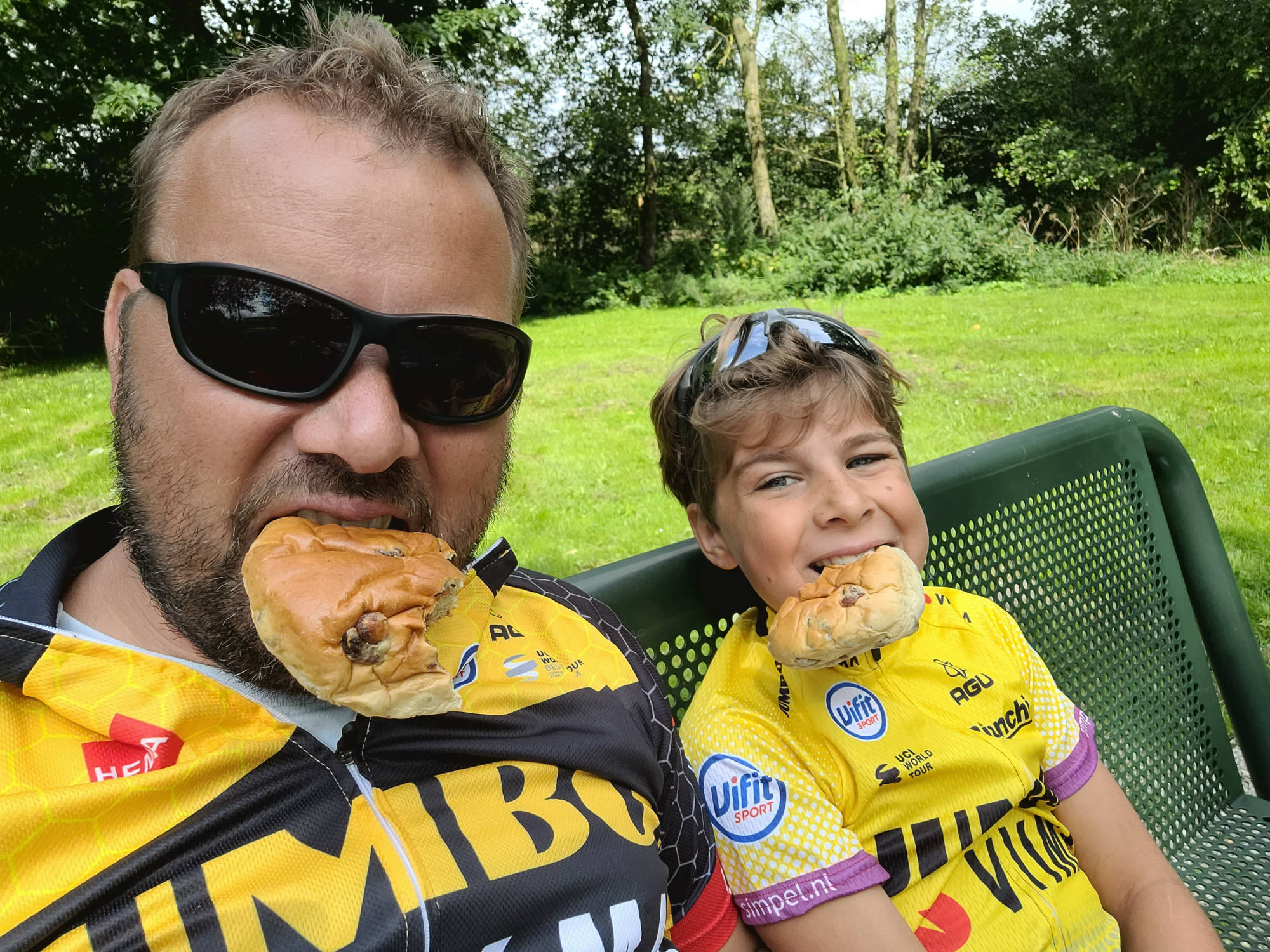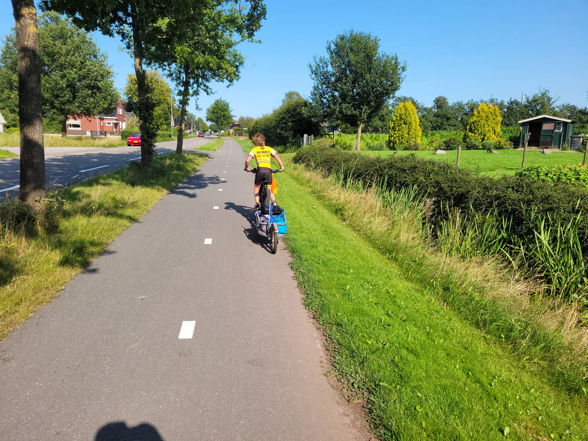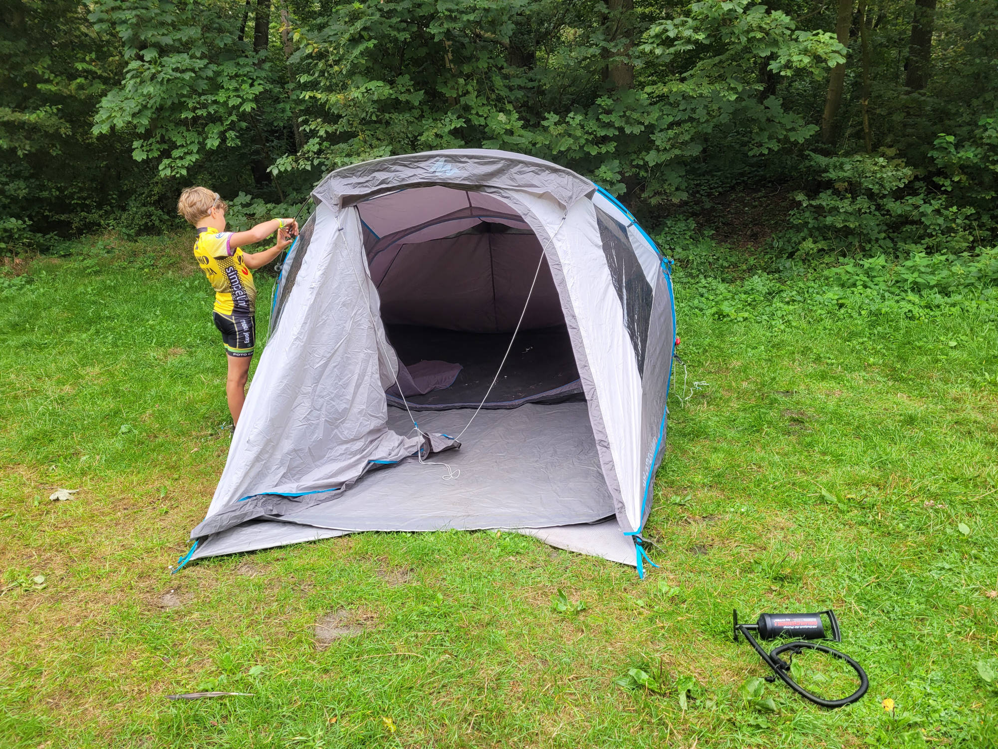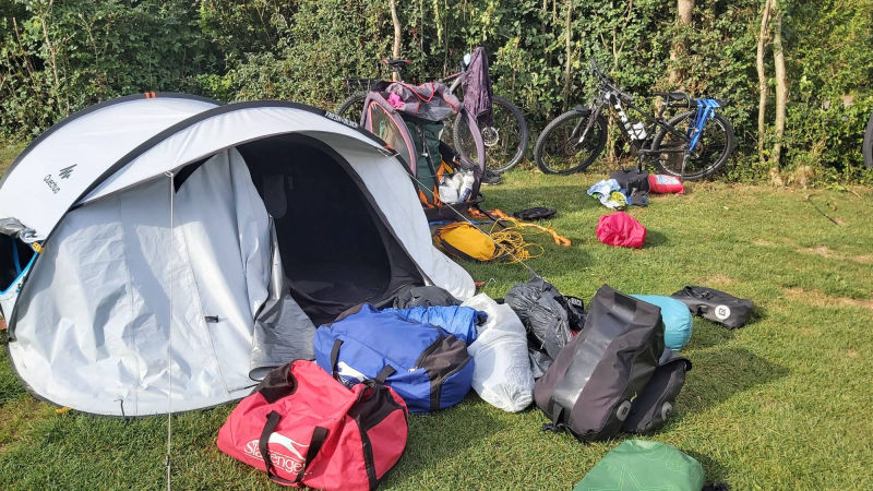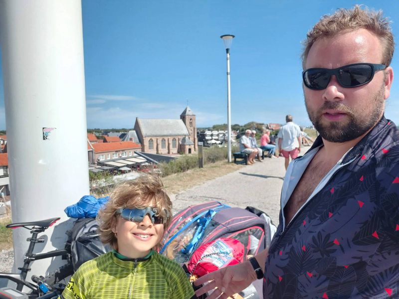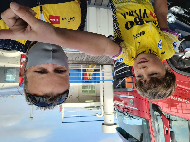 we hebben eerst alle natte spullen weer in de fietskarren gepakt en snel op pad. Steeds een beetje verder totdat we eindelijk bij Letterbert waren. De tent op zetten en nog even van de zon genieten. Daarna racen naar de snackbar voor een RAS patat met frikandel.