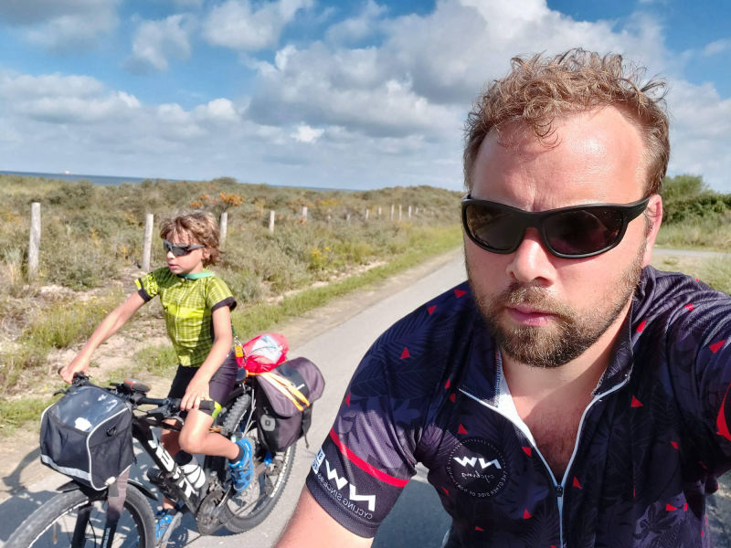 De rest van de dag door de duinen gefietst naar Velsen Zuid op wat met hier een daar een regenbui. Totdat we naar een strandtent gingen om te eten en tot onze onderbroek natgeregend zijn en ook nog even 15 KM extra gefietst.